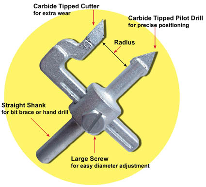 • Tungsten carbide tipped cutting blade and pilot drill