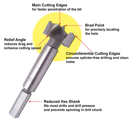 - With brad point, 2 main cutting edges
